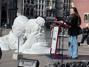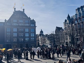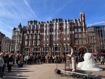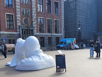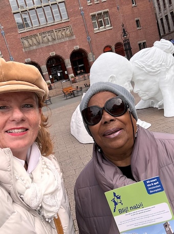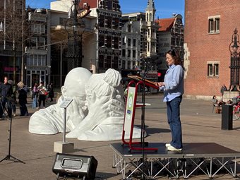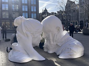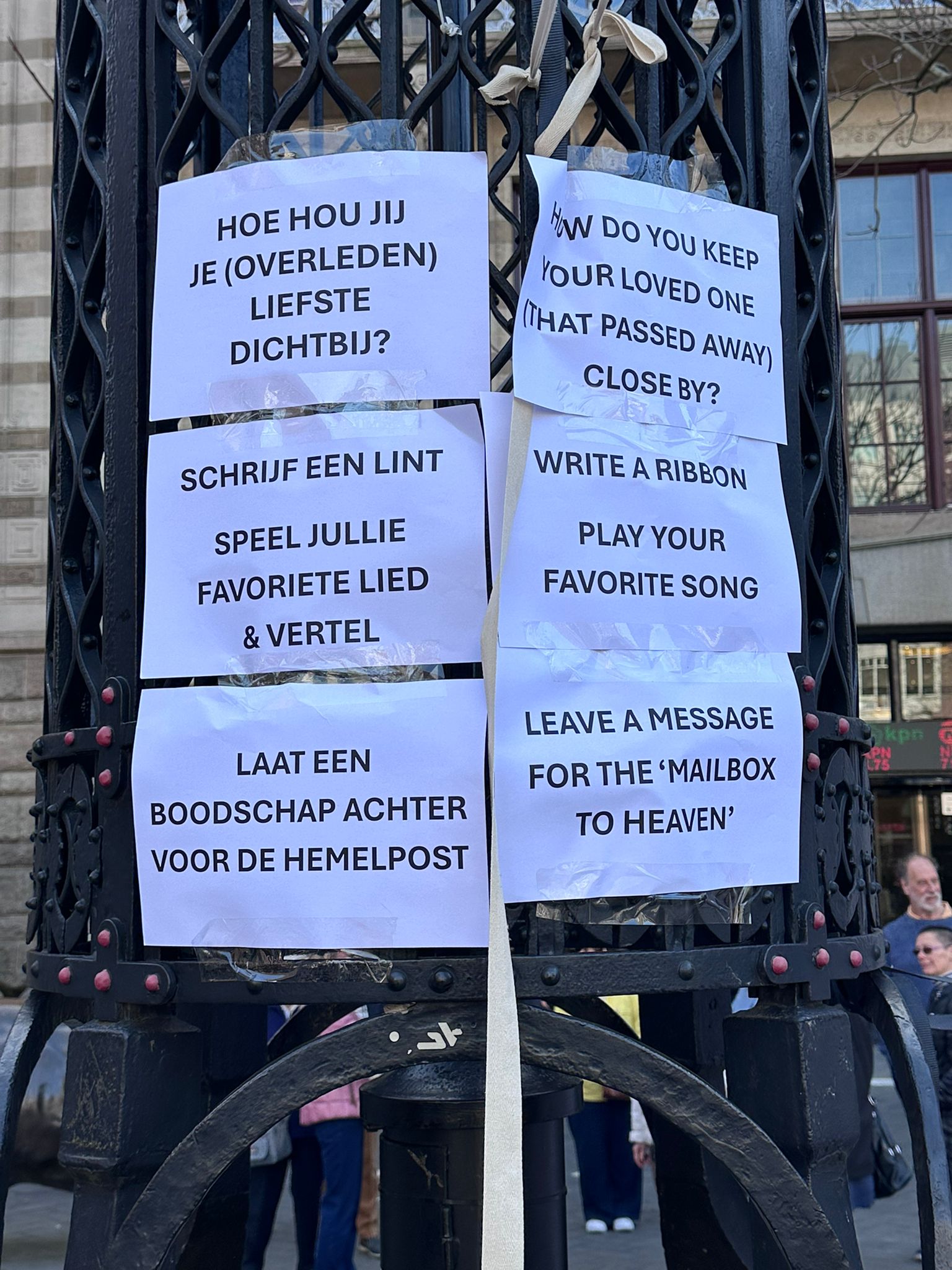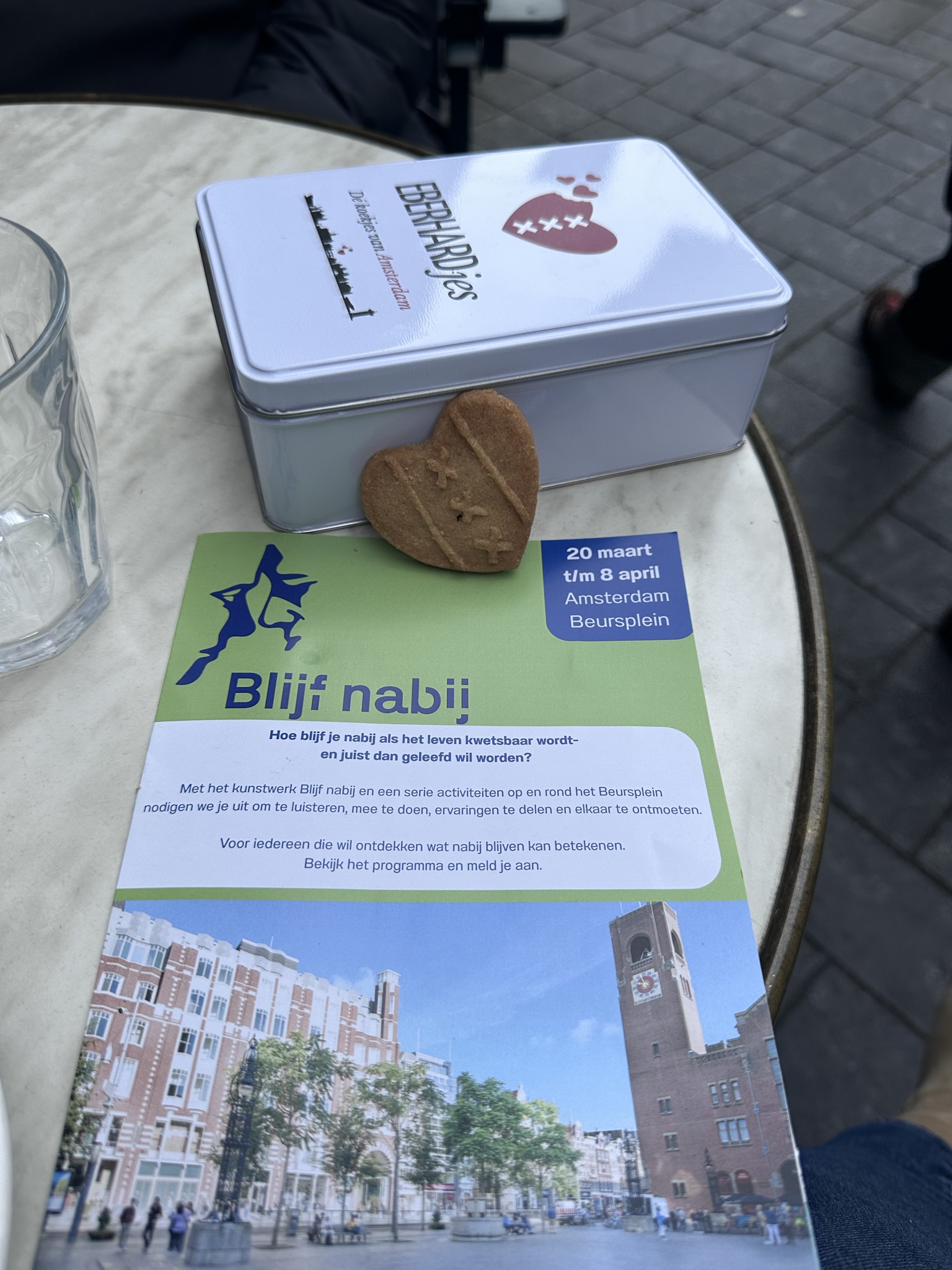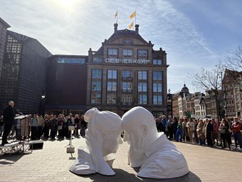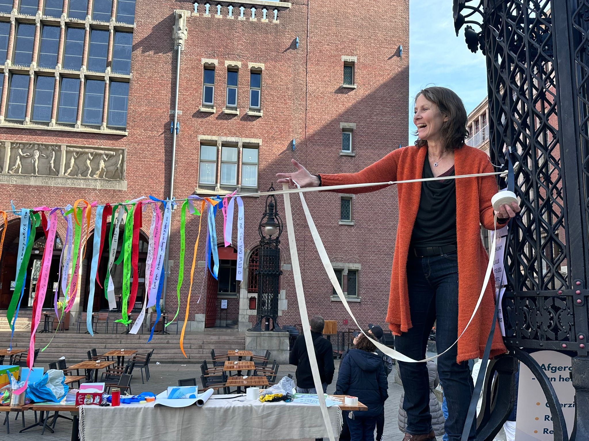 Van 20 maart t/m 8 april wordt op het Beursplein met een imposant kunstwerk aandacht gevraagd voor het belang van nabijheid in de laatste levensfase. Het kunstwerk, ‘Blijf nabij’, is gemaakt door Saskia Stolz. Drie weken lang staat Amsterdam en specifiek het Beursplein in het teken van Blijf nabij. Zo ziet dat er uit: