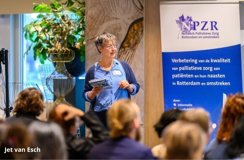 Jet van Esch maakte van deze gelegenheid gebruik om Sandra Post van der Burg, voormalig ketencoördator van het NPZR&o te bedanken voor haar jarenlange inzet voor de palliatieve zorg. De take home messages vanuit de presentaties werden gedeeld met de aanwezigen.