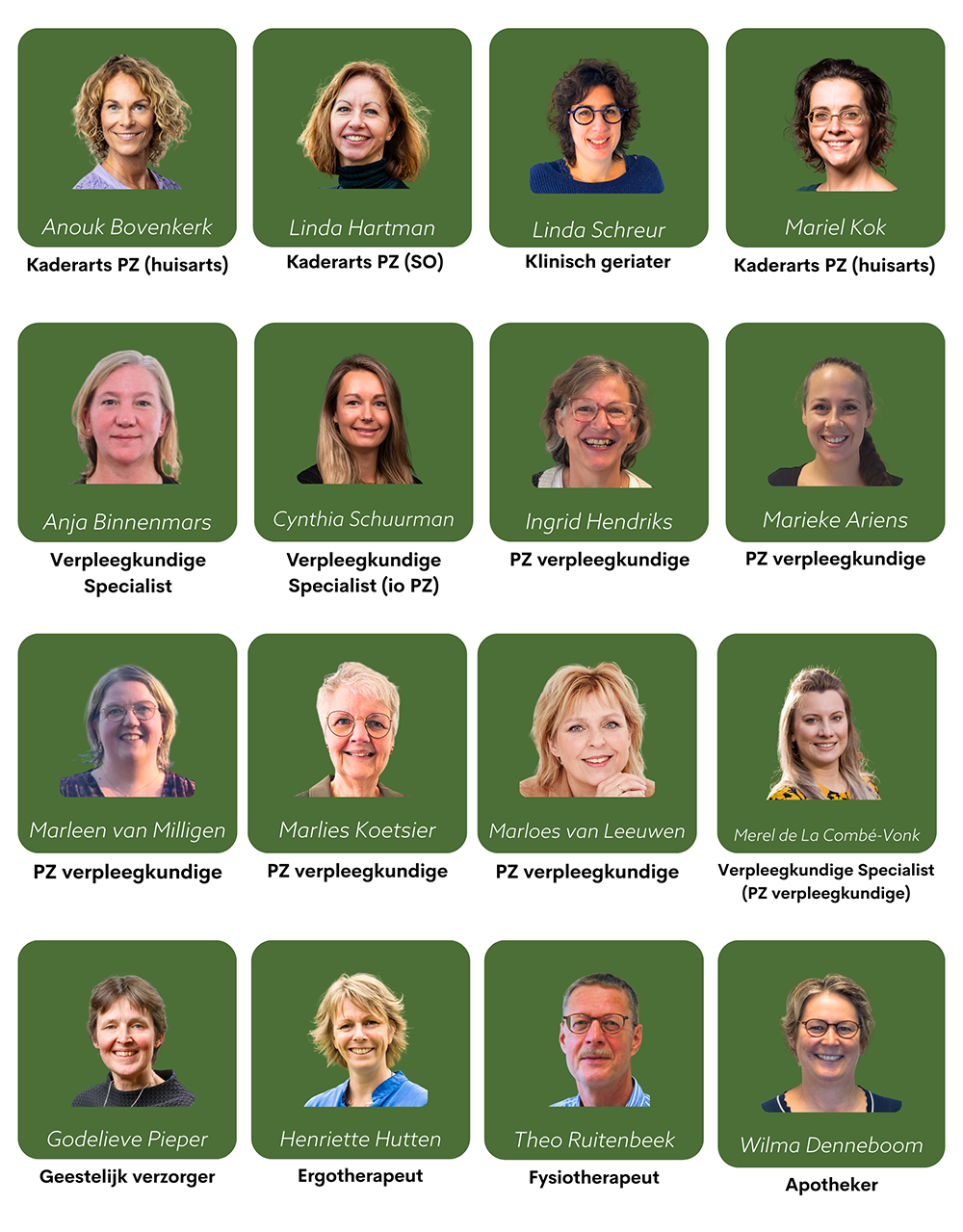 De volgende zorgprofessionals zijn onderdeel van het PaT: