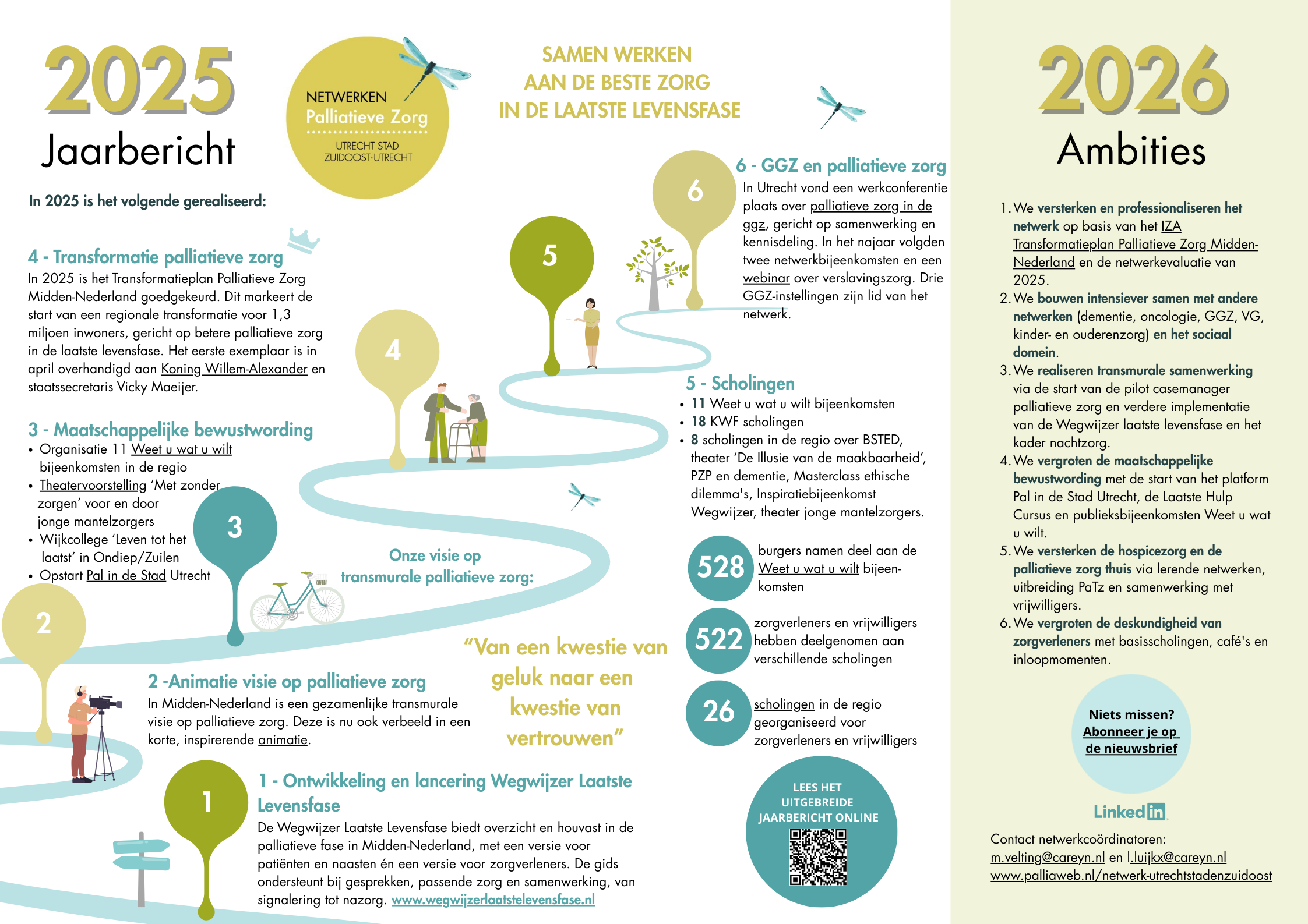 In 2025 is het Transformatieplan Palliatieve Zorg Midden-Nederland goedgekeurd. Daarmee start in Midden-Nederland een regionale transformatie die 1,3 miljoen inwoners raakt, waarvan jaarlijks circa 7.300 mensen overlijden in een niet-onverwachte situatie. Zij verdienen in de laatste levensfase goede palliatieve zorg. Dit is een belangrijke mijlpaal voor de palliatieve zorg in onze netwerken en onze regio. Het eerste exemplaar van het plan werd in april overhandigd aan Koning Willem-Alexander en staatssecretaris Vicky Maeijer.
