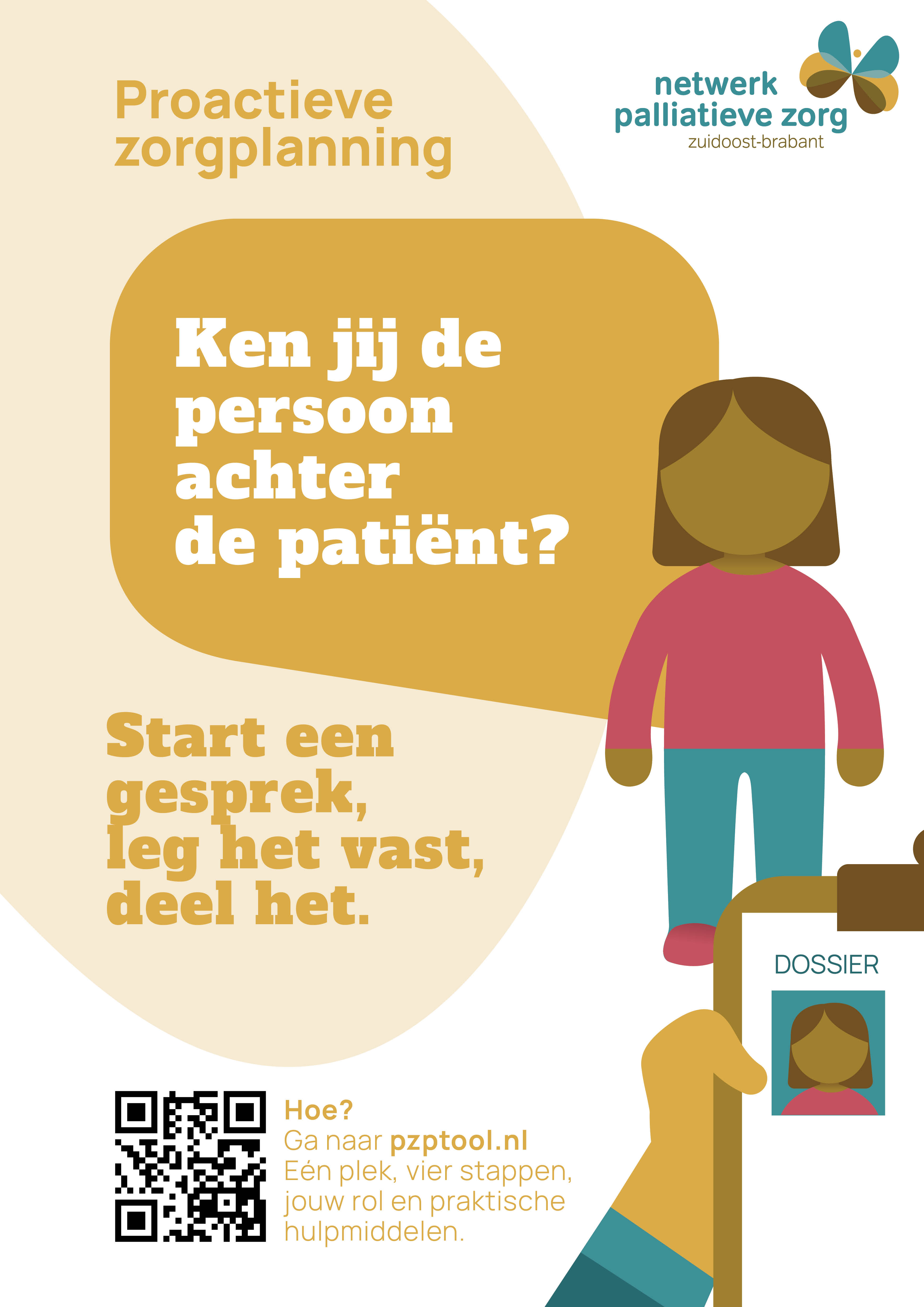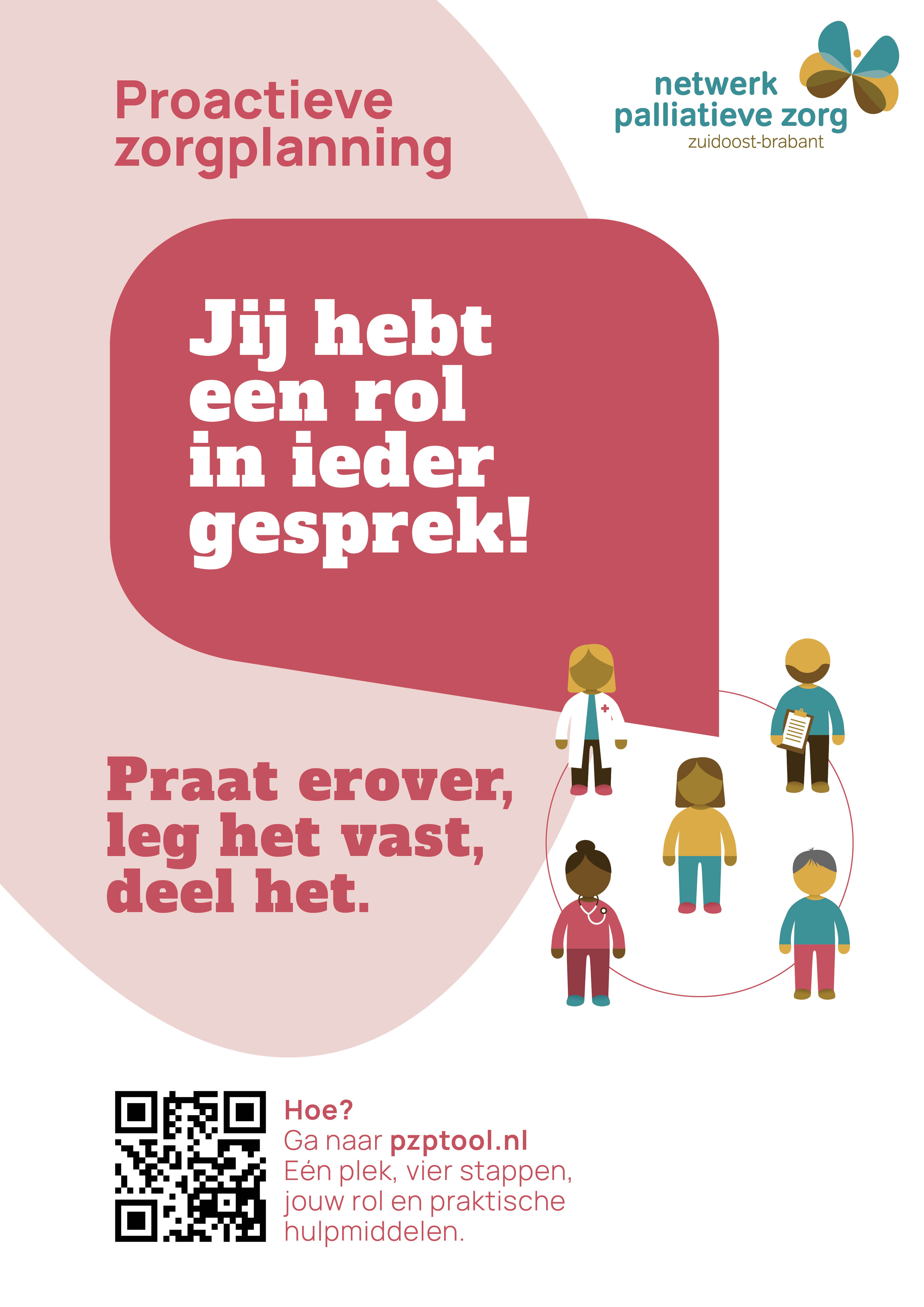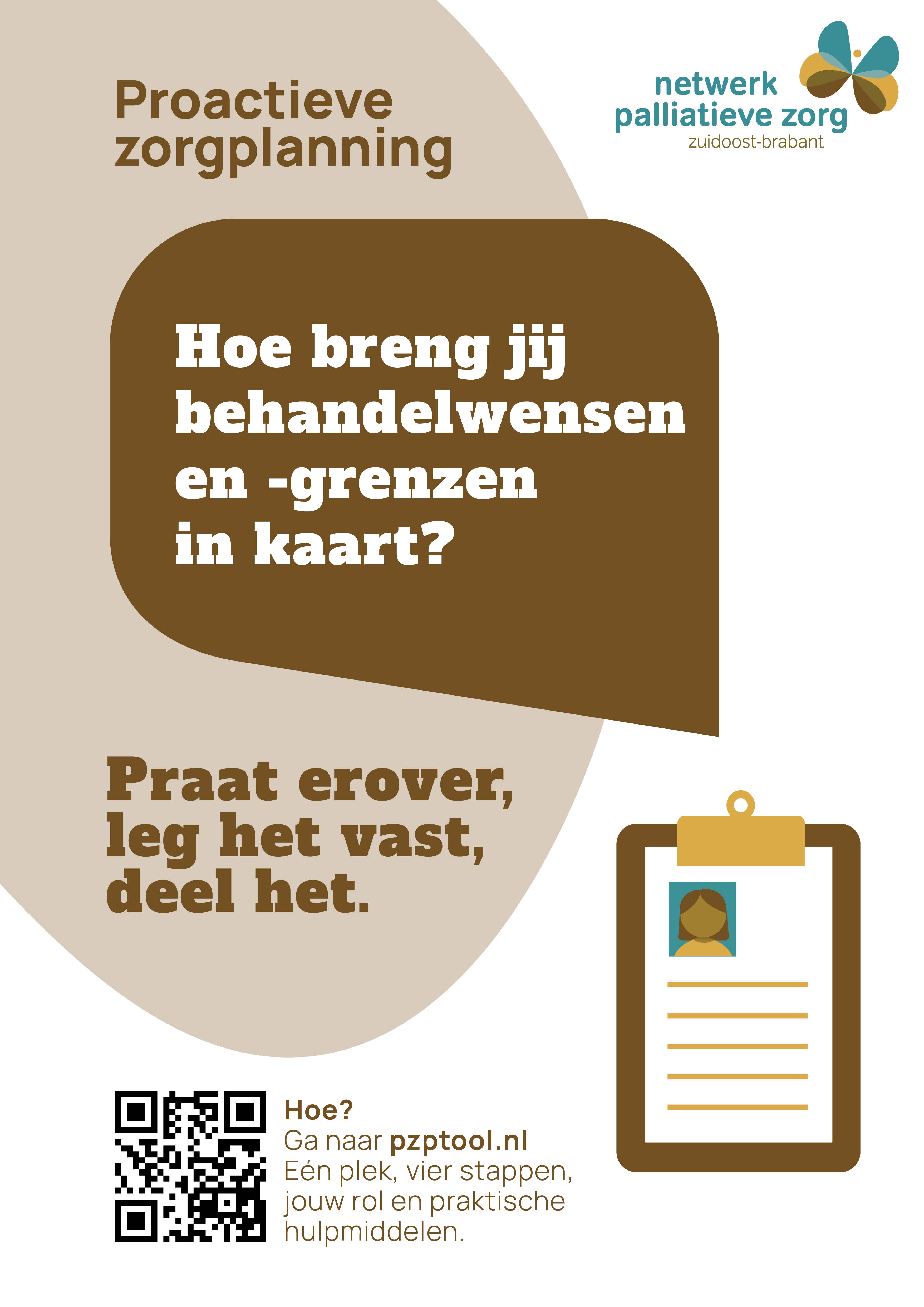 Tijdig spreken over de laatste levensfase is niet altijd makkelijk, wél belangrijk. De PZP-Tool helpt zorgprofessionals om dit gesprek tijdig, samen en goed voorbereid te voeren. Deze tool is gebaseerd op de vernieuwde RTA en vertaalt naar de dagelijkse praktijk: kort, overzichtelijk en direct toepasbaar. Ontdek de vier stappen van proactieve zorgplanning, zie wat jouw rol is en gebruik de hulpmiddelen.