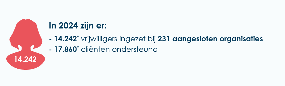 - 14.242* vrijwilligers ingezet bij 231 aangesloten organisaties