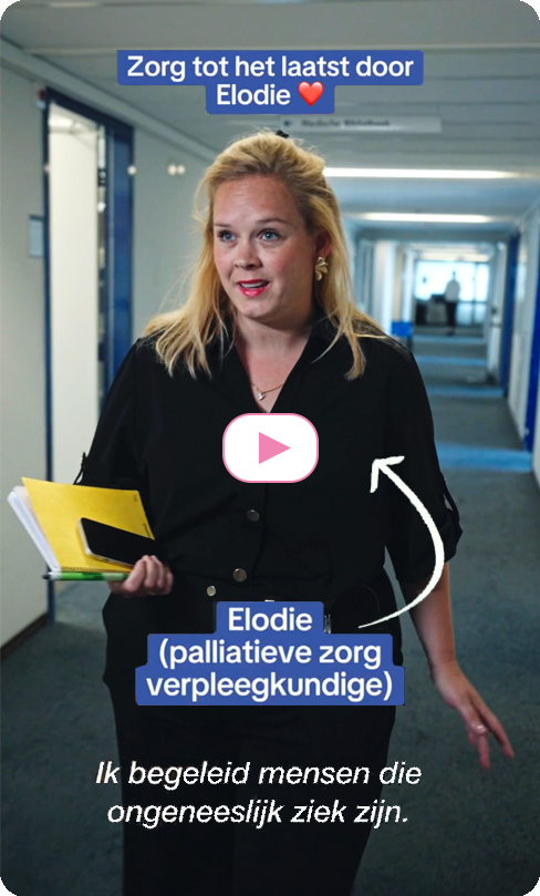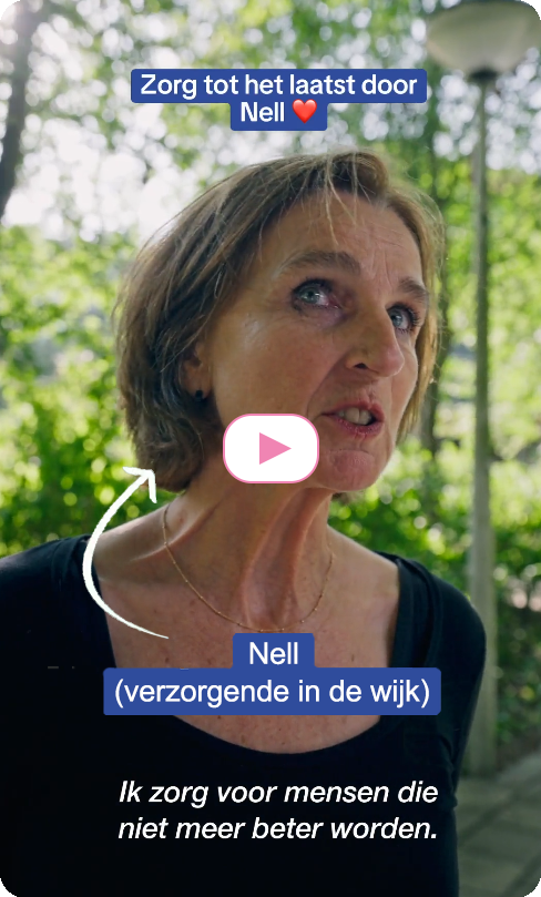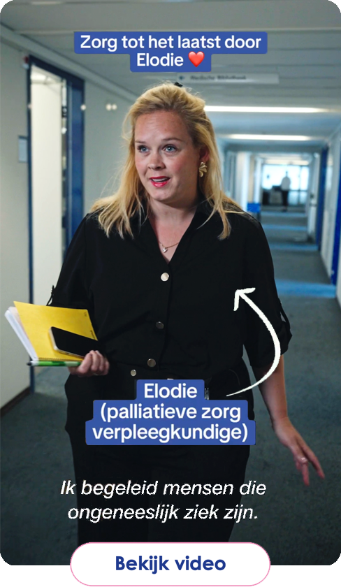 Wanneer je zorgt voor iemand die ongeneeslijk ziek is, dan verleen je palliatieve zorg. Goede palliatieve zorg geef je niet alleen, maar doe je samen met je collega’s. Wat betekent het om goede palliatieve zorg te geven? Wat heb jij daarvoor nodig? En hoe werk je zo goed mogelijk samen? Lees er alles over op deze website.